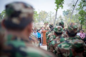 មានប្រសាសន៍សំណេះសំណាលជាមួយនាយទាហាន និង ពលទាហាន ក្នុងឱកាសប្រជាពលរដ្ឋខ្មែរយើងក៏ដូចខេត្តសៀមរាបបានរៀបចំព្រឹត្តិការណ៍អង្គរសង្រ្កាន្តទទួលសាទរទេវតាឆ្នាំថ្មីឆ្នាំរកានព្វស័កព.ស២៥៦០. ២៥៦១ ខាងមុខ ឯកឧត្តមបណ្ឌិតឃឹម ប៊ុនសុងក៍បានពាំនាំនូវប្រសាសន៍ផ្តាំផ្ញើ សាកសួរសុខទុក្ខពី សំណាក់សម្តេចតេជោ ហ៊ុន សែន នាយករដ្ឋមន្ត្រី និងសម្តេចកិតិ្តព្រឹទ្ធបណ្ឌិត ប៊ុន រ៉ានី ហ៊ុនសែន ដ៏ដូចឯកឧត្តមឧបនាយករដ្ឋមន្ត្រី ទៀ បាញ់ រដ្ឋមន្ត្រីក្រសួងការពារជាតិ និង អគ្គបញ្ជាការ តែងតែនឹកគិតដល់ដល់បងប្អូននាយទាហាន ពលទាហាននៅសមរភូមិមុខ តាមបន្ទាត់ព្រំដែនកម្ពុជា ថៃ អំពីសុខភាព និង ជីវភាពរស់នៅរបស់បងប្អូនកងយោធពលខេមរភូមិន្ទយើង។ ឯកឧត្តមបណ្ឌិតក៏បានធ្វើការក្រើនរំលឹក ដល់នាយទាហាន ពលទាហានទាំងអស់ ដោយបានបញ្ជាក់ថា ក្រោយពីបងប្អូនបានវិលត្រឡប់ពីការបំពេញភារកិច្ច នៅតាមបណ្តោយព្រំដែនកម្ពុជា ថៃ មកឈរជើងនៅលើទីតាំងចាស់របស់ខ្លួនវិញ សូមបងប្អូនត្រូវយកចិត្តទុកដាក់ ក្នុងការហ្វឹកហាត់ឲ្យបានជាប្រចាំ នូវយុទ្ធវិធី យុទ្ធសាស្រ្តរបស់កងទ័ព ។ ម៉្យាងទៀតទោះបីស្ថានការណ៍នៅតាមបណ្តោយព្រំដែនកម្ពុជា ថៃ បានមានសភាពដូចដើមក៏ដោយ បងប្អូនទាំងអស់ក៏ត្រូវត្រៀមលក្ខណៈនៅគ្រប់វិនាទី ក្នុងការជួយអន្តរាគមន៍ នូវពេលមានសភាពការណ៍ណាមួយកើតឡើង ។ ឯកឧត្តមបណ្ឌិតឃឹម ប៊ុនសុង ក៏បានធ្វើការផ្តាំផ្ញើដល់បងប្អូនទាំងអស់ ត្រូវយកចិត្តទុកដាក់ខ្ពស់ទៅលើបញ្ហាសុខភាព អនាម័យ និង ធ្វើការកសាង ជម្រកក្នុងអង្គភាព ព្រមទាំងធ្វើការដាំដុះដំណាំ បន្លែបង្កា និង ចិញ្ចឹមសត្វ ដើមី្បផ្គត់ផ្គង់ជីវភាពកងទ័ព ក្នុងអង្គភាព និង គ្រួសារកងទ័ព ជាពិសេសលើការគ្រប់គ្រង និង ថែរក្សានូវគ្រឿងបំពាក់សម្ភារៈកងទ័ពឲ្យបានល្អ ក្នុងការទ្រទ្រង់នៅពេលមានសភាពការណ៍ណាមួយកើតឡើង ។ ឯកឧត្តមបណ្ឌិតក្នុងនាមជាប្រធានគណៈបញ្ជាការឯកភាពរដ្ឋបាលខេត្ត ក៏បានធ្វើការថ្លែងអំណរគុណ សម្តេចតេជោ ហ៊ុន សែន និង សម្តេចកិត្តិព្រឹទ្ធបណ្ឌិ ប៊ុន រ៉ានី ហ៊ុន សែន ក្នុងនាមជាអគ្គភស្តុភារជាន់ខ្ពស់នៃ កងយោធពលខេមរភូមិន្ទ បានយកចិត្តទុកដាក់ខ្ពស់ ចំពោះកងទ័ពដែលបានកំពុងបំពេញកាតព្វកិច្ចការពារជាតិមាតុភូមិកម្ពុជា ទាំងជីវភាពរស់នៅ និងសុខភាព។ថ្ងៃនេះគណៈប្រតិភូខេត្តបានផ្តល់នូវជាគ្រឿងឧបភោគបរិភោគ ដល់បងប្អូនជានាយទាហាន ពលទាហាននៃយោធភូមិភាគទី៤ ប្រចាំទិសទី២ និងអង្គភាពវរៈសេនាតូចការពារព្រំដែនលេខ៤០៨ក្នុងស្ថានភាពកសាងទីតាំង និង ហ្វឹកហ្វឺន ព្រមទាំងបានបួងសួងដល់បារមីដ៏សក្តិសិទ្ធដែលគង់ប្រថាប់នៅ លើទឹកដីប្រវត្តិសាស្រ្ត ខេត្តសៀមរាប តាមជួយបីបាច់ ថែរក្សា ដល់កងកម្លាំងទាំងអស់ ឲ្យជួបតែសេចក្តីសុខចម្រើន និង ដ